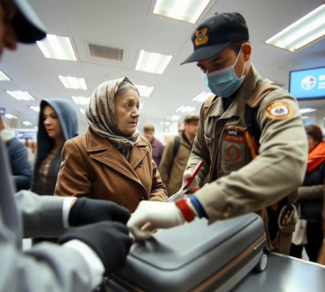 As the grandmother carefully repacked her suitcase, the onlookers began to disperse, some smiling at the touching scene. The officer, now more relaxed, helped her with the last few items, ensuring everything was secure for her journey.