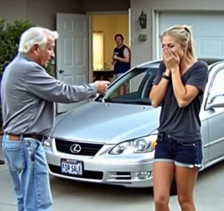 Stunned silence filled the space as Emily’s eyes widened in disbelief. “Dad, you can’t be serious,” she stammered, tears threatening to spill. “This car means everything to you.”