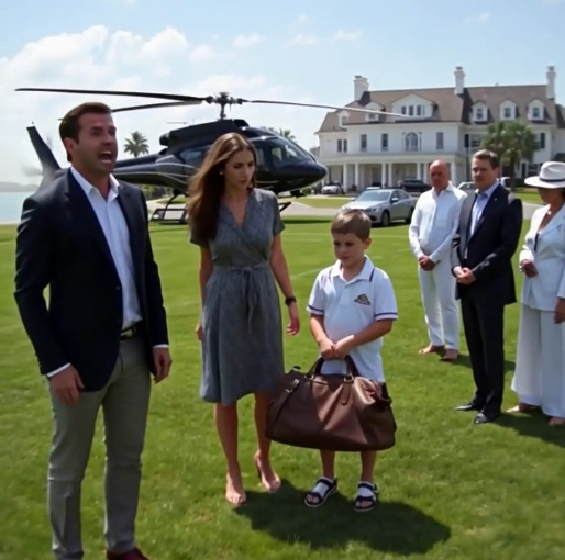 The sound grew louder, a rhythmic whirring that seemed to echo the pulse rising in my chest. A helicopter, sleek and black, broke the horizon, descending gracefully over the estate grounds. The Greer family, so accustomed to their quiet luxury, watched in wide-eyed surprise as the chopper landed softly on the outskirts of the lawn.